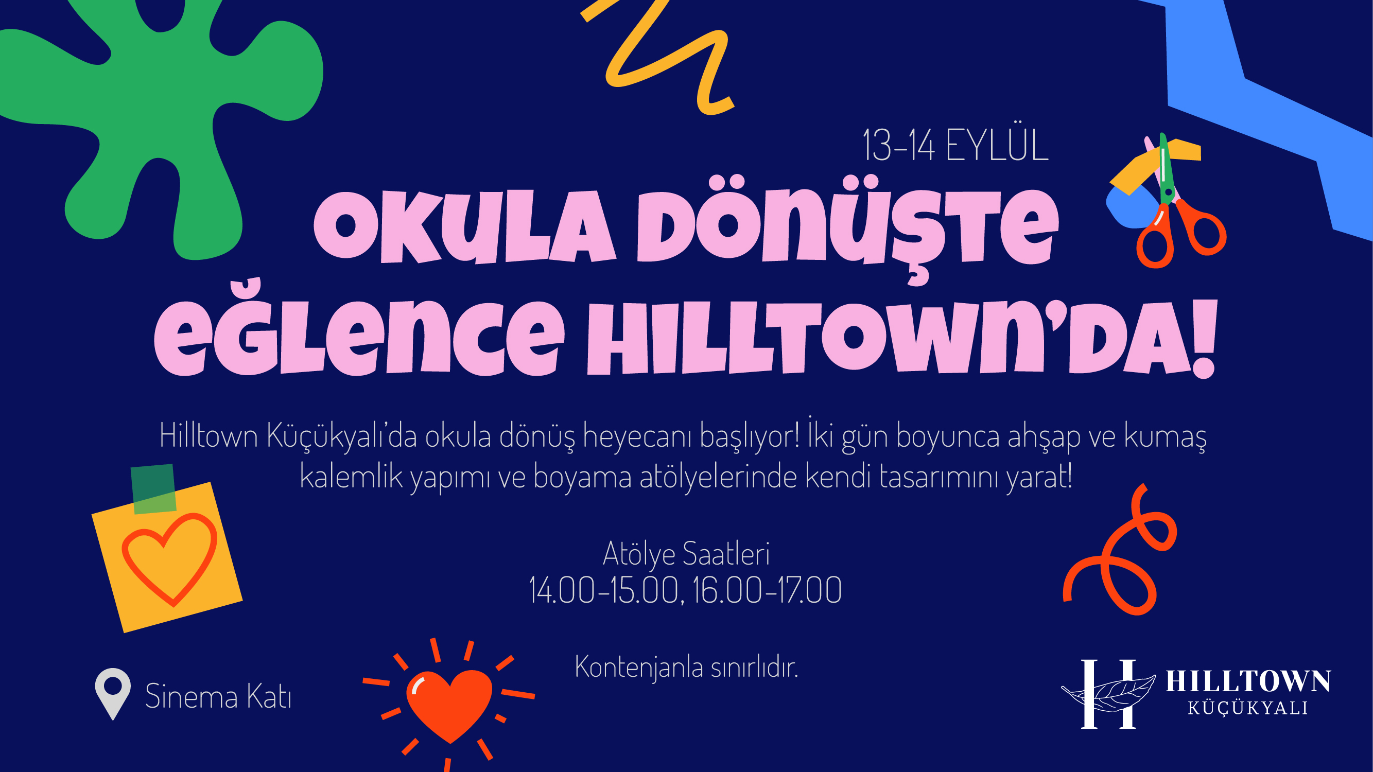 Back to school excitement begins at Hilltown Küçükyalı!On September 13-14, join workshops on making wooden and fabric pencil holders and painting, and create your own design!