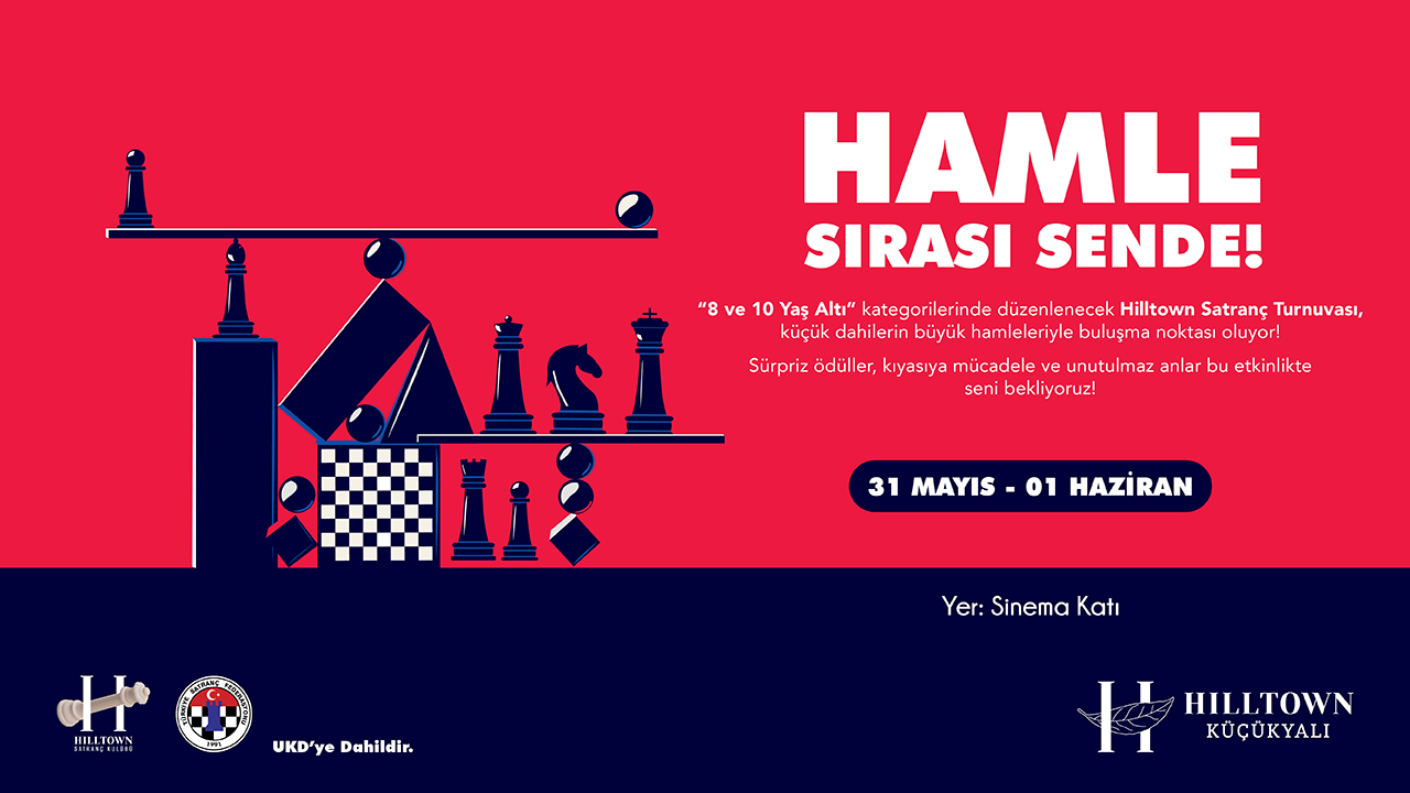 "8 ve 10 Yaş Altı" kategorilerinde düzenlenecek Hilltown Satranç Turnuvası, küçük dahilerin büyük hamleleriyle buluşma noktası oluyor!Sürpriz ödüller, kıyasıya mücadele ve unutulmaz anlar bu etkinlikte seni bekliyor!